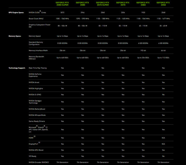 不过此次的RTX 2050采用了最新的安培架构,并且使用了与RTX 3050一样的GA 107核心,功耗为30-45W,拥有4GB GDDR6显存,并据官方回答,RTX 2050将支持部分光追游戏。相较于RTX 2060,RTX 2050的流处理器更多,但是显存位宽只有RTX 2060的三分之一。